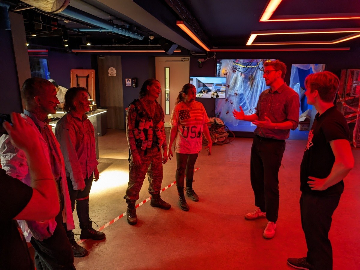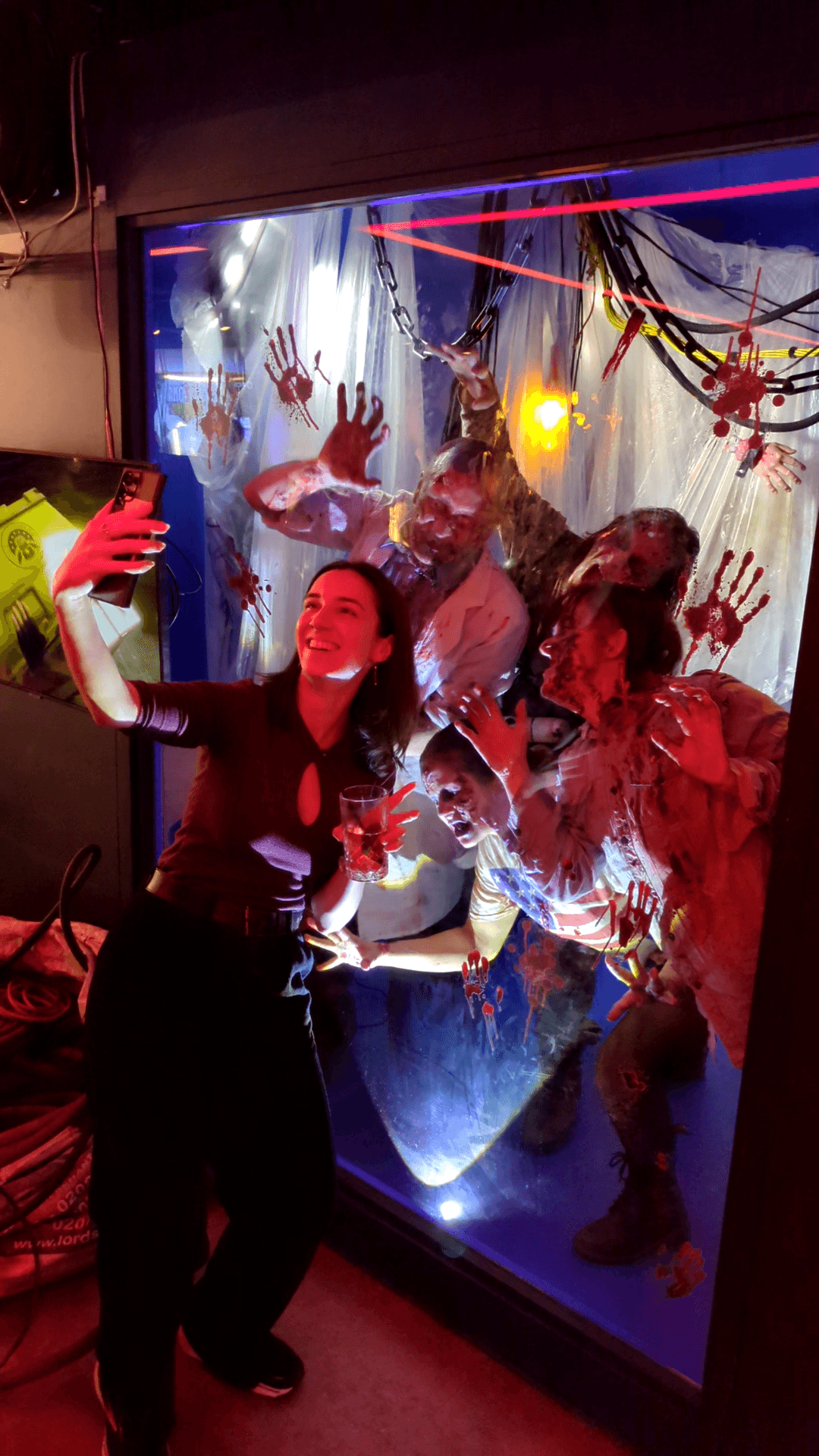 To increase immersion for our special guests, we hired zombie actors (yes, that's a thing!) to roam the area and pose for pictures. We worked with the game developer and the actors to ensure they behaved similarly to zombies in-game - meaning we had to direct real-life zombies on how to pose, walk, and act.